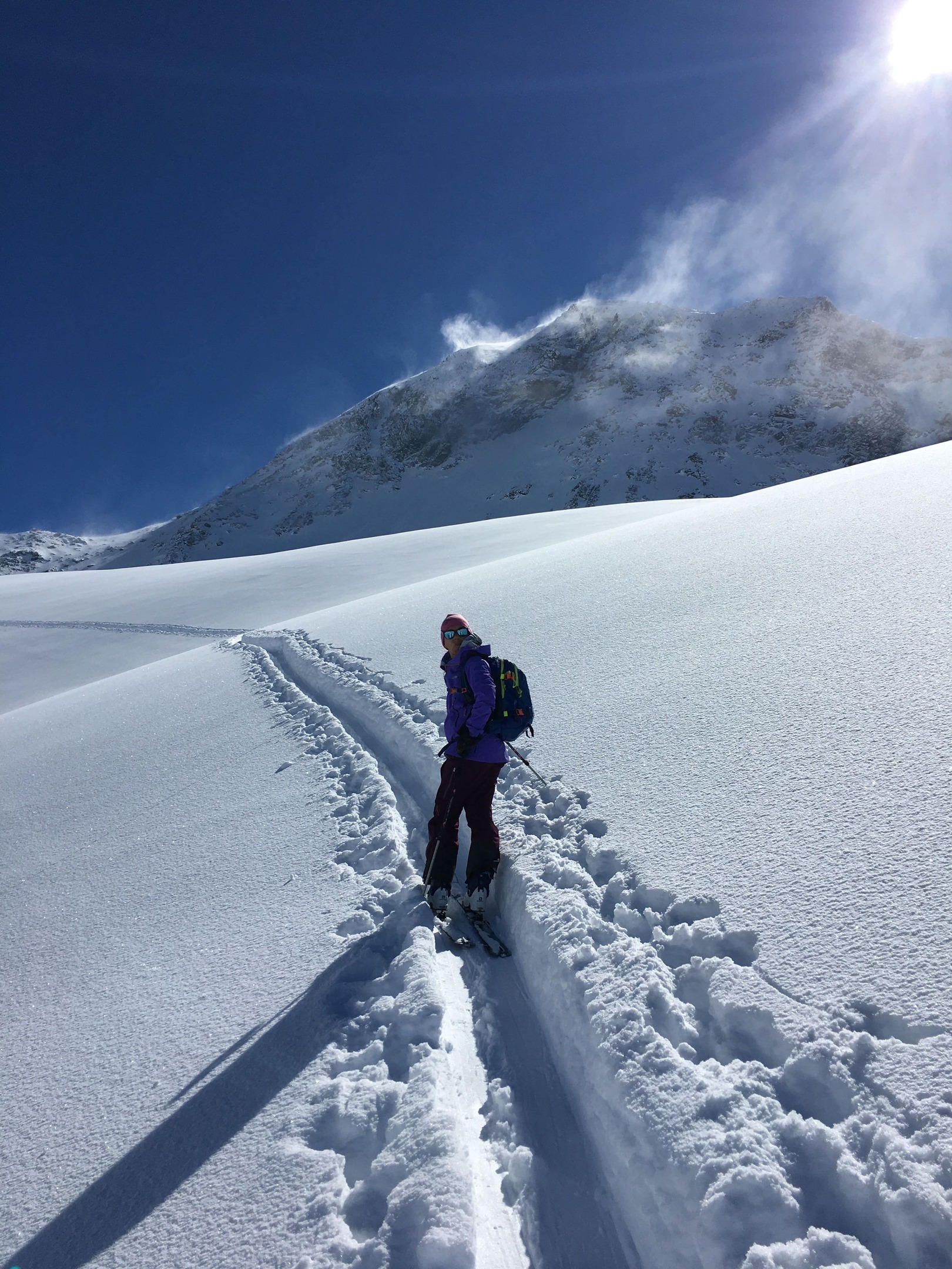 L’utilisation de peaux de phoques permet de progresser en montée, à son rythme, puis vient le temps de la descente avec un matériel pas toujours maîtrisé !